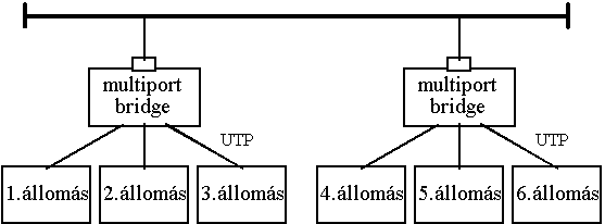 Az Ethernet rugalmasságát növelik az un. repeater-ek (ismétlôk). Ezek az egyik portjukon vett keretet bit-rôl bitre átmásolják a másik portjukra, mintegy meghosszabbítva ezzel az elektromos jellemzôk miatt rövidre korlátozott szegmenst. Több porttal rendelkezô (multiport) repeater-ek használata esetén minden portra átmásoljuk a vett keretet. Természetesen az ütközéseket továbbra is idôben észlelni kell, a jelterjedési idô nem lehet több 64 byte elküldésének idejénél, ezért bármely két állomás között maximum 4 repeater helyezkedhet el, ám a kapott hálózat meglehetôsen szövevényes lehet. A hálózat mérete ezzel a módszerrel 2.5 km-re növelhetô.